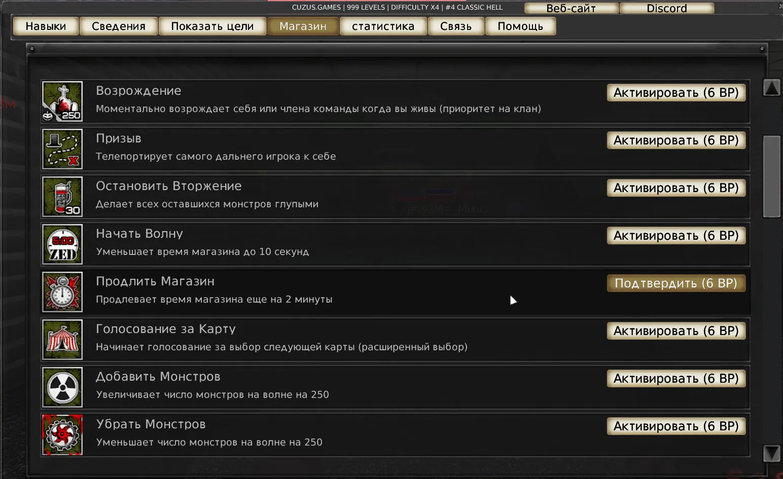 - Classic servers: voting starts 10 seconds before the end of the shop before the final wave (shop time does not count during voting). If players do not survive until the final wave, the map will be chosen automatically.